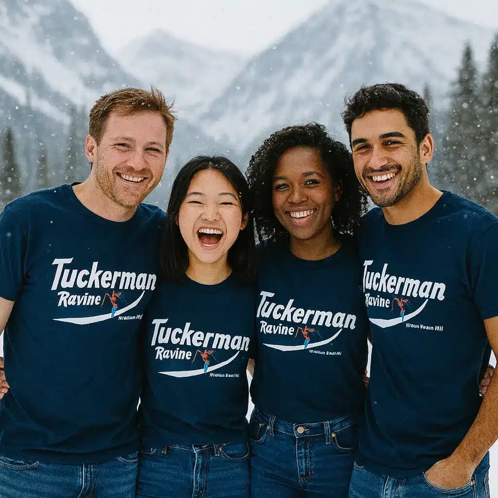 - Features bold “Tuckerman Ravine” lettering with a dynamic skier design across the chest.